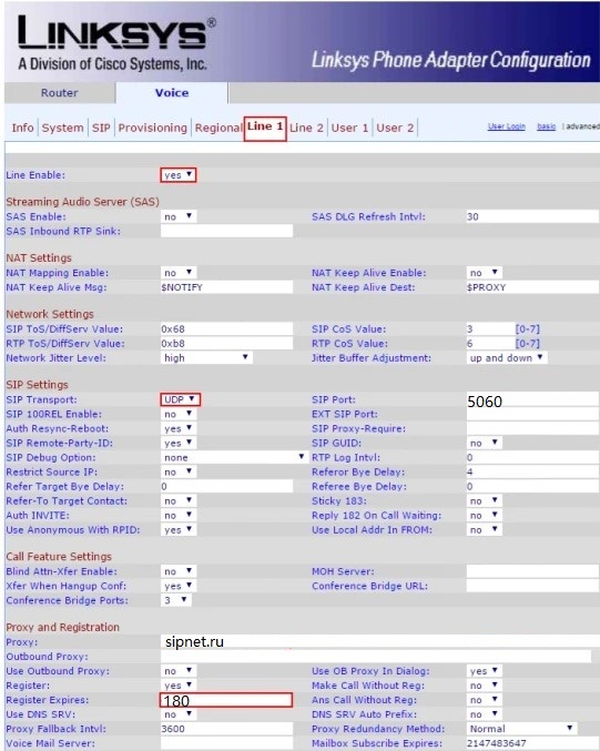 Заходим в раздел "Line 1" .