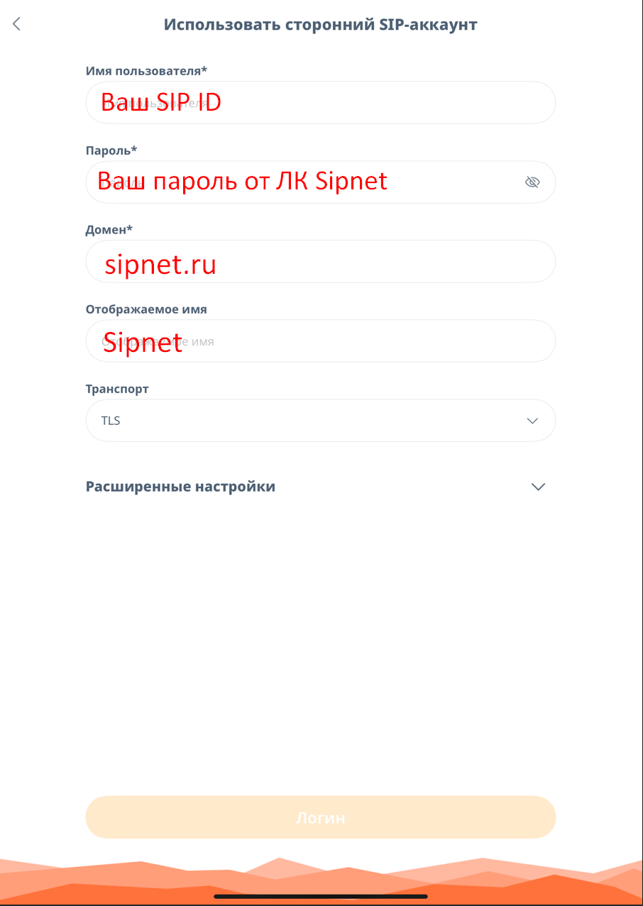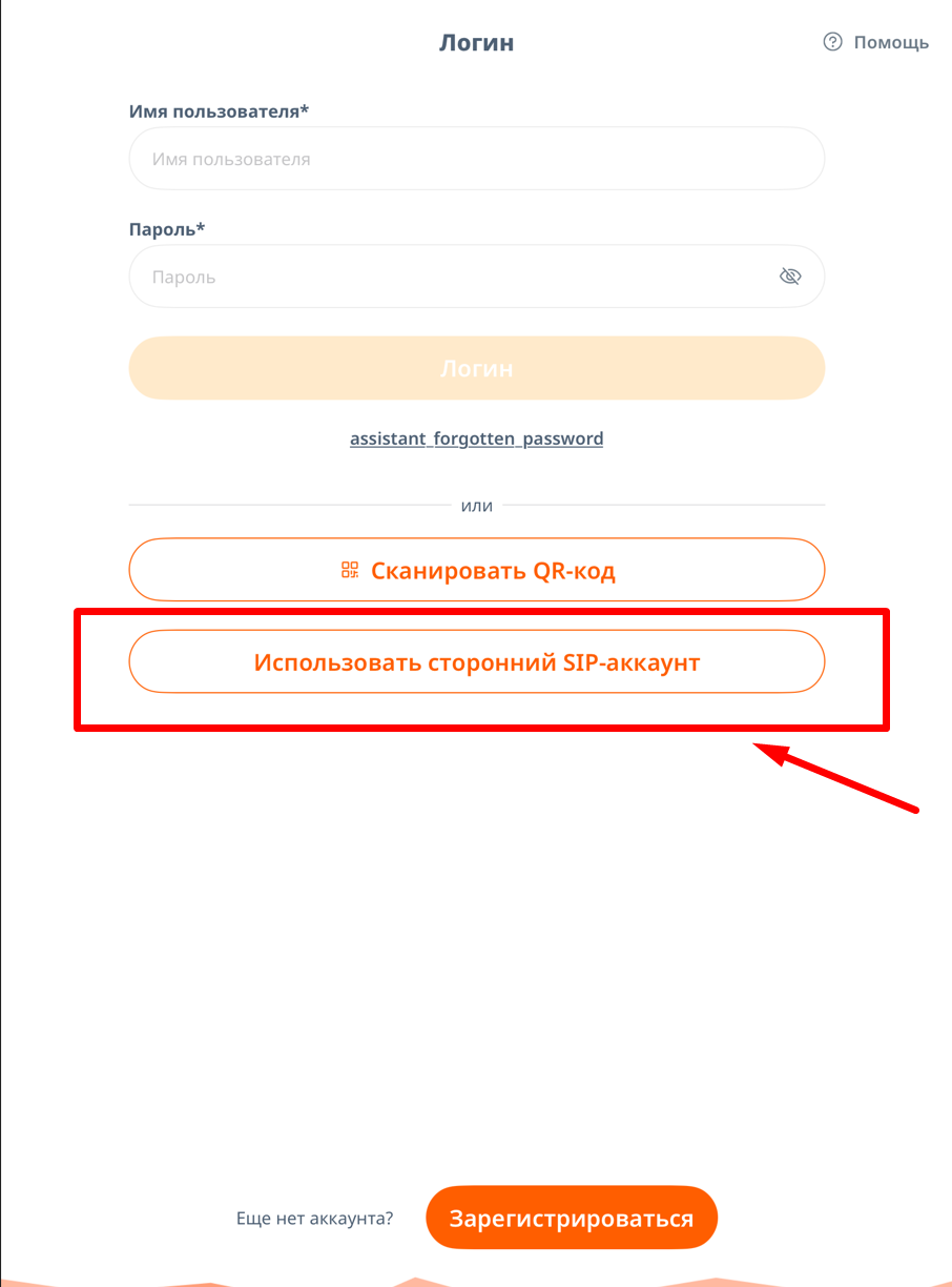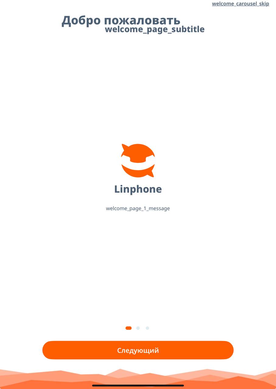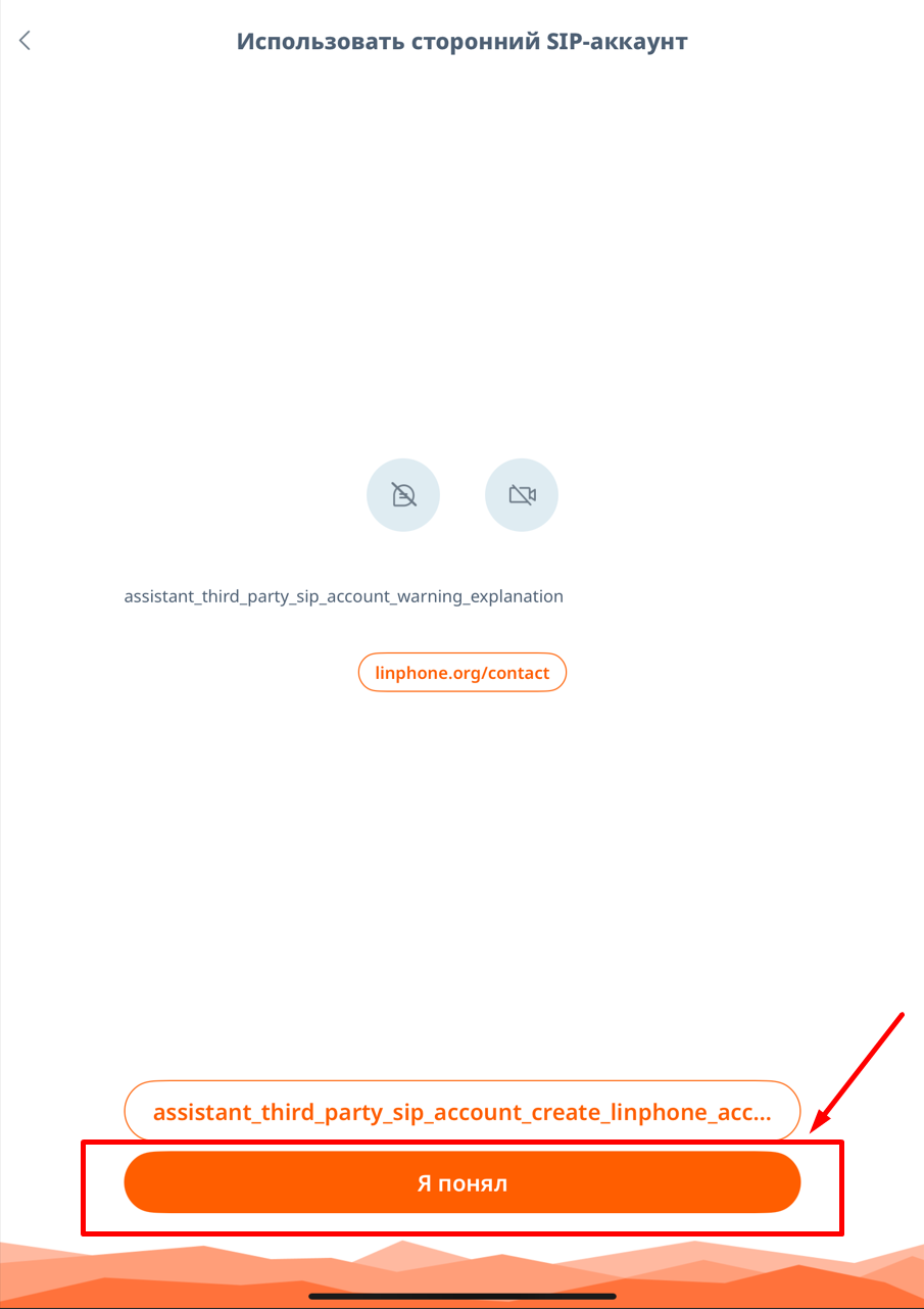 | 1. Загрузите Linphone из AppStore. |         2. В открывшемся окне нажмите "ОК". | 3. В следующем окне нажмите “Использовать сторонний SIP-аккаунт” |