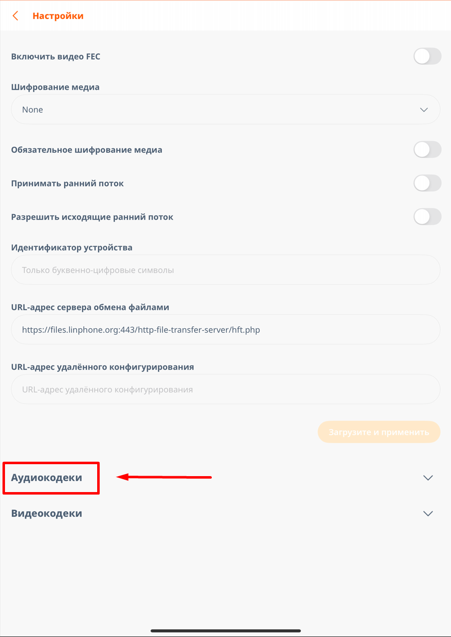 | 11. Далее необходимо перейти в пункт “Расширенные настройки” | 12. Перейдите в пункт “Аудиокодеки” |