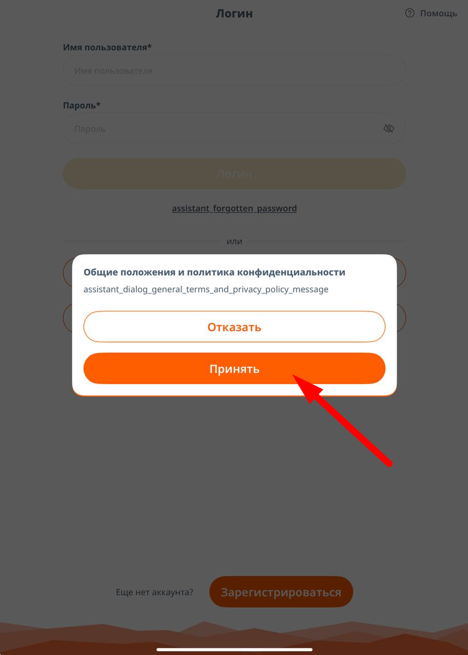 | 5. В следующем окне нажмите “Я понял” | 6. Заполните учетные данные, как указано на скриншоте. После чего нажмите на кнопку “Логин” внизу окна |