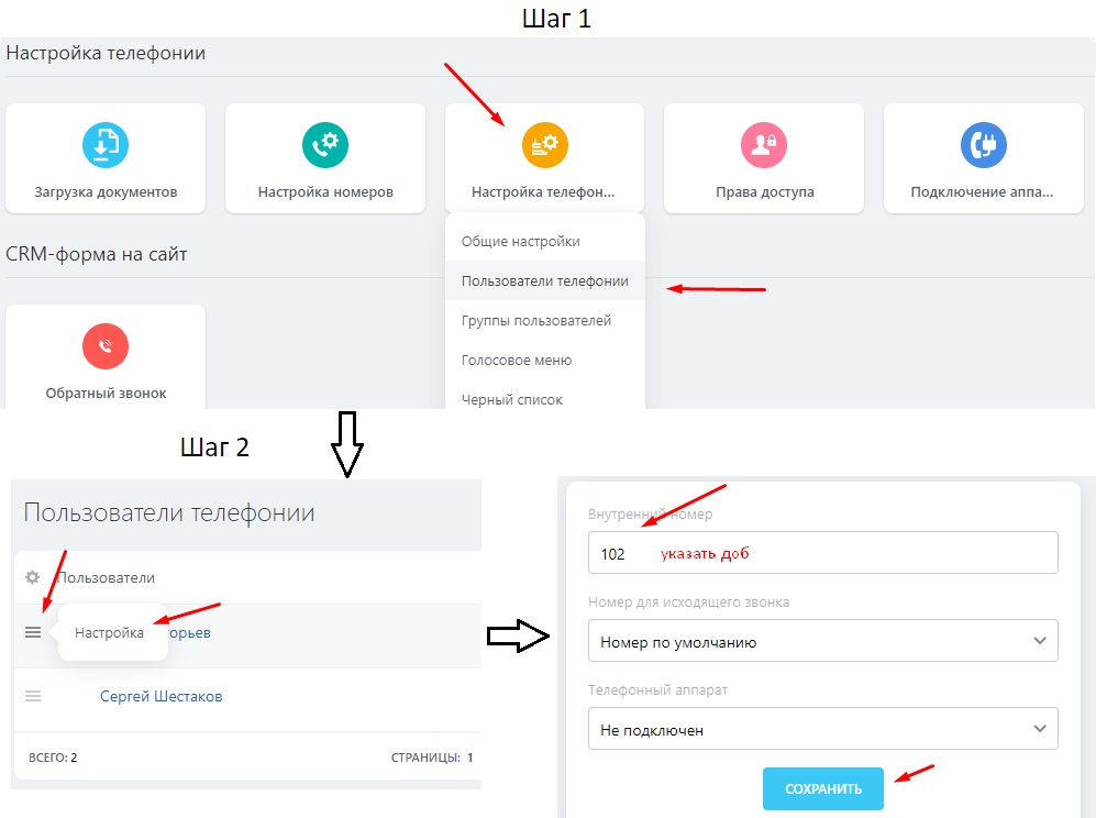 зайти в “настройка телефонии” → “Пользователи телефонии”