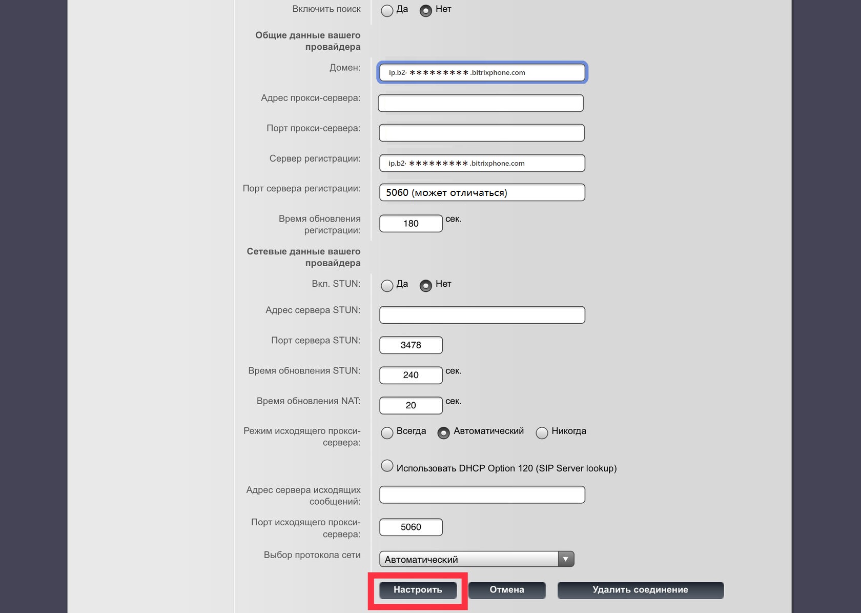 После внесения необходимых данных, нажмите “Настроить” = сохранить изменения.